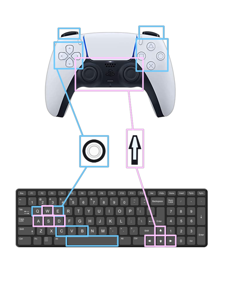 For KeyBoard control i usually put my left thumb on space and index on C. V or X. And right hand on arrow.